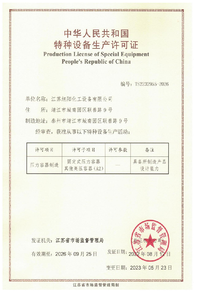 江蘇旭陽化工設備有限公司專業從事各類化工、環(huán)保、制藥、發(fā)酵、食品、新材料、鋰業等項目設計、制造及壓力容器的生產制造,是一家集研發(fā)、生產和進出口貿易于一體的高科技企業。